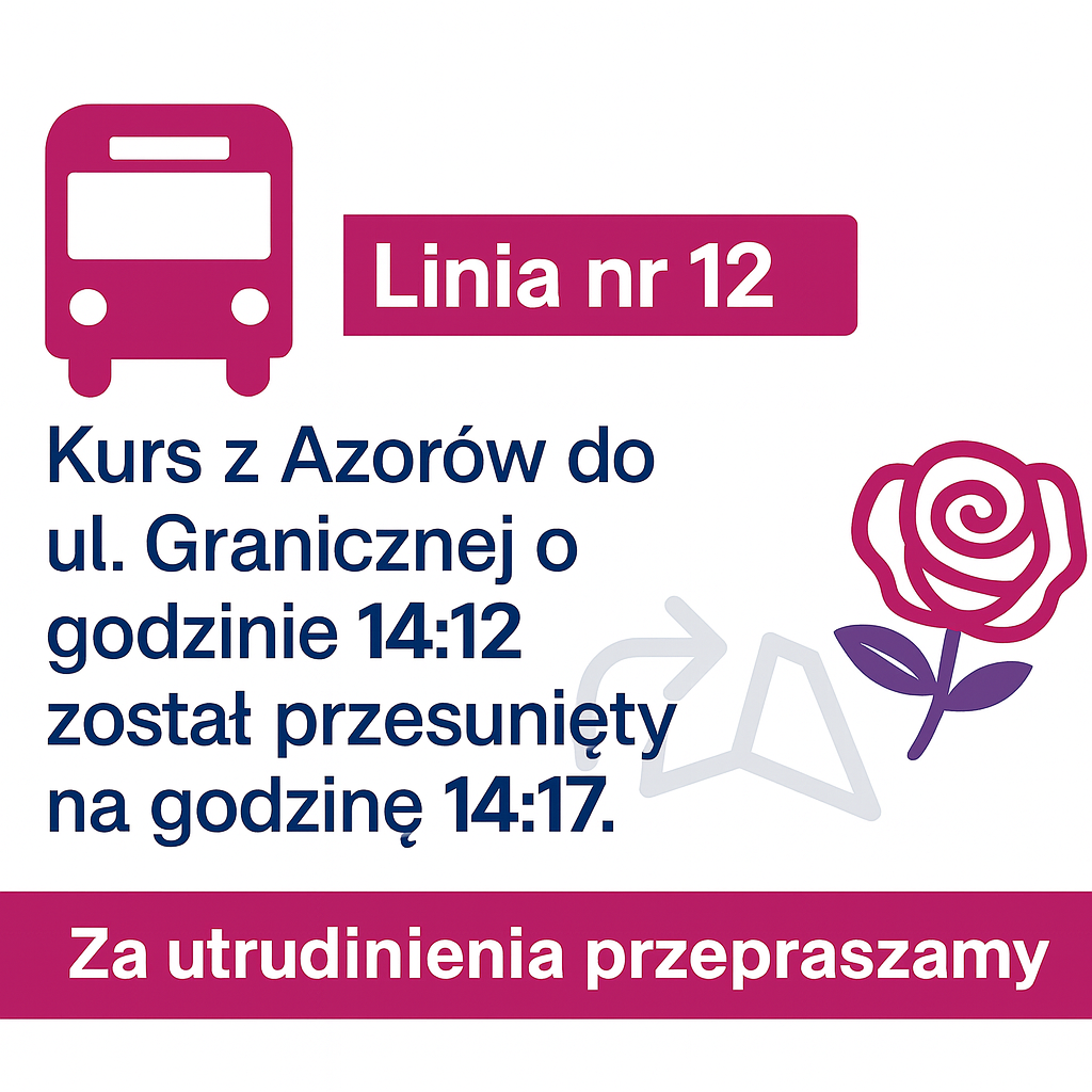 - kurs z Azorów do ul. Granicznej o godzinie 14:12 został przesunięty na godzinę 14:17.